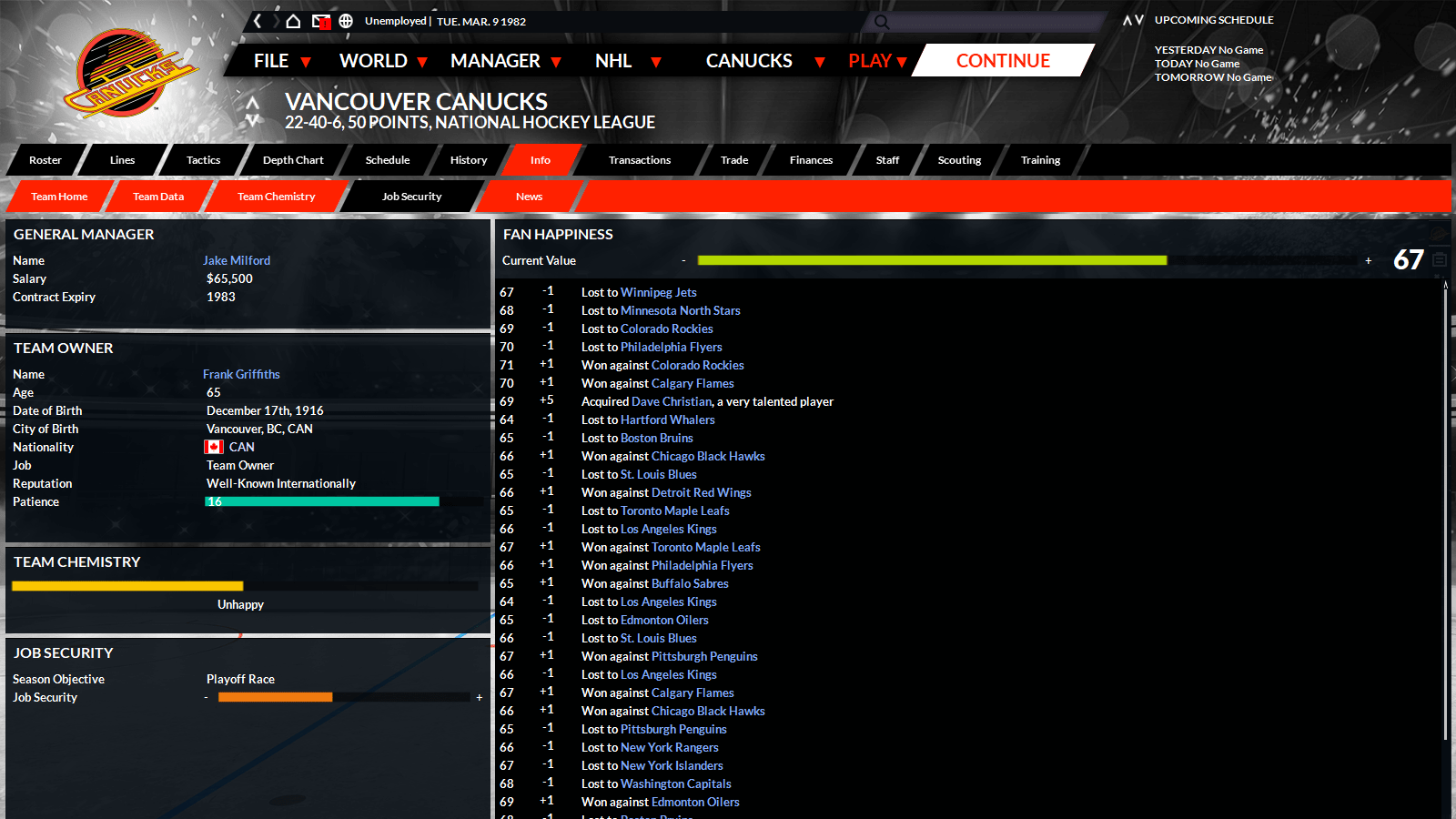 Fan Happiness is now tracked, and changes in response to how you perform. In-game events and actions affect team chemistry, attendance, and owner satisfaction – so keeping the players and fans happy now affects your job security.
